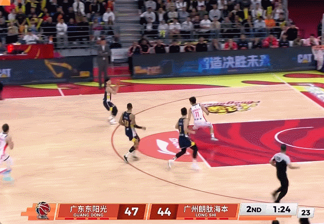 次节上来,广州开局打出7-0攻击波反超6分,焦泊乔扣篮止血,威金顿、托马斯连得3分,王少杰两罚止血,奎因追身3分,威金顿两罚回应,萨姆纳携手奎因打出9-0攻击波反超3分,郭艾伦两罚止血,陈国豪两罚反超,王少杰、萨林杰连得4分,威金顿两罚追分,萨林杰、徐杰打出8-0攻击波,半场战罢广东55-47将领先拉开到8分。