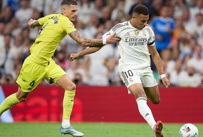 下半场易边再战。第47分钟,维尼修斯带球突入禁区左侧,起脚射门,皮球被挡了一下发生折射,钻入球门近角!皇马这运气相当不错。这粒进球让皇马打开了局面。第67分钟,皇马获得点球机会。维尼修斯主罚,他抽射破门,梅开二度!紧接着,米卡塔泽帮助比利亚雷亚尔扳回一球。随后莫里尼奥犯规两黄变一红被罚下。紧接着,姆巴佩再进一球杀死比赛。最终,皇马3-1击败比利亚雷亚尔。
