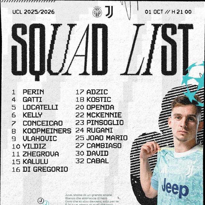 尤文本轮欧冠大名单:伊尔迪兹领衔,布雷默、凯夫伦缺阵